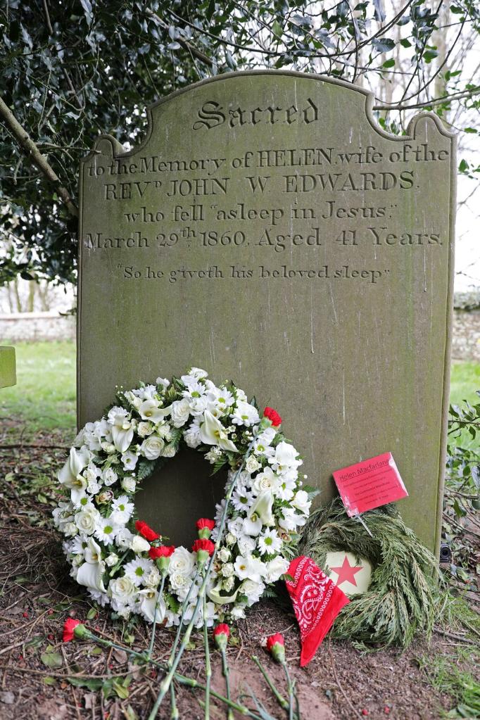 Flowers and wreaths are seen on Macfarlane's tombstone, hailing her historical contribution in spreading Marxism, in Cheshire, Britain, April 3, 2022. (Xinhua/Li Ying)■