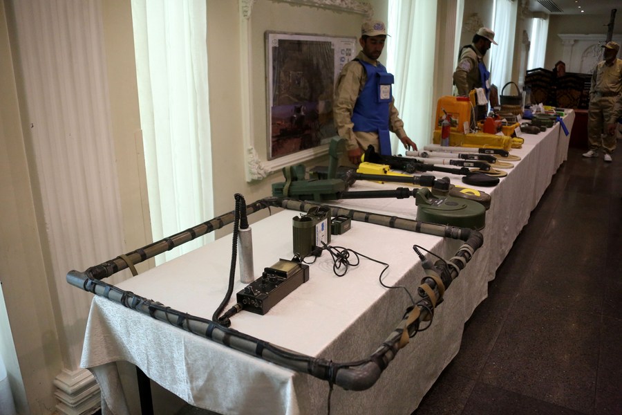 Photo taken on April 6, 2022 shows landmine detection equipment at an event marking the International Day for Mine Awareness and Assistance in Mine Action in Kabul, Afghanistan. (Photo by Saifurahman Safi/Xinhua)