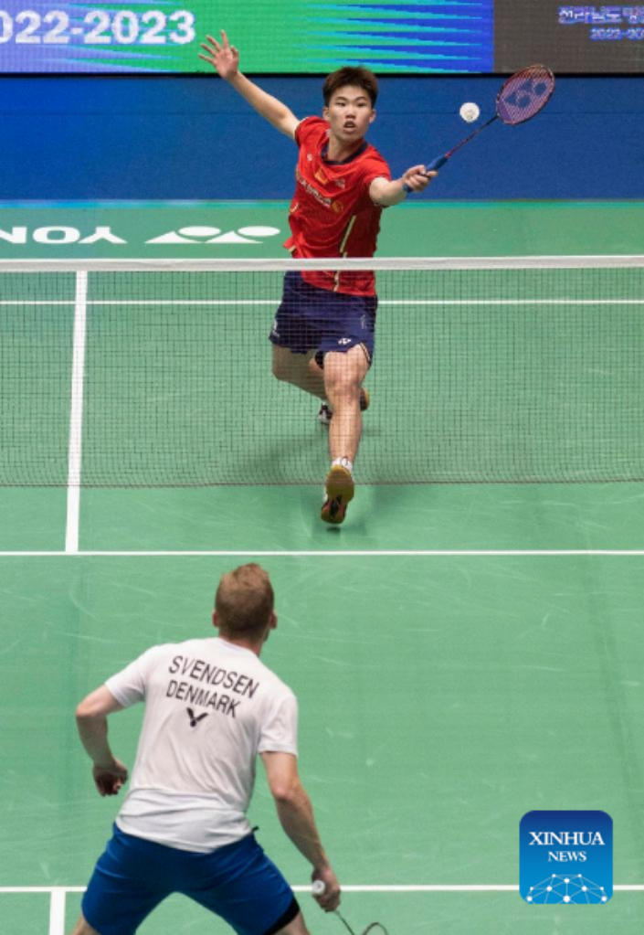In the women's singles, second seed An Se-young of South Korea swept India's third seed Pusarla V Sindhu 21-14, 21-17, while sixth seed Pornpawee Chochuwong of Thailand defeated South Korea's Kim Ga-eun 17-21, 21-14, 21-14.