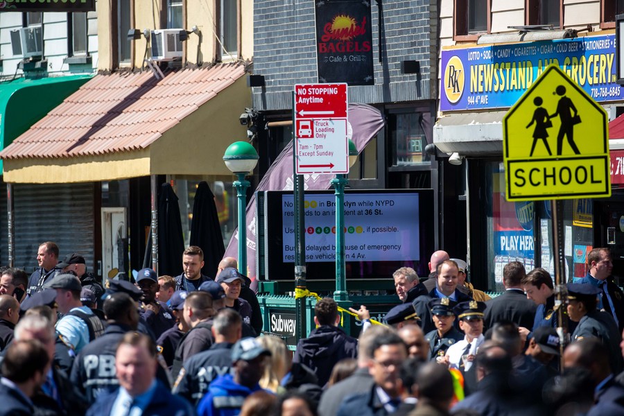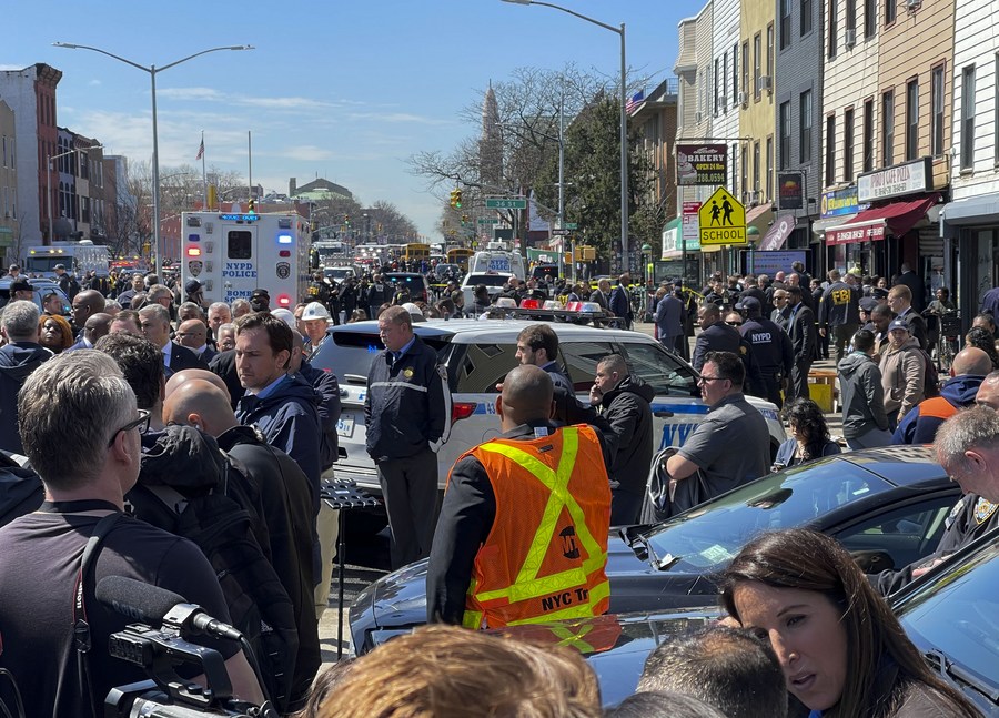 NEW YORK, April 12 (Xinhua) -- At least 16 people were injured, including 10 with gunshot wounds, in a subway attack in Brooklyn, New York City, during rush hours Tuesday morning, local authorities said.