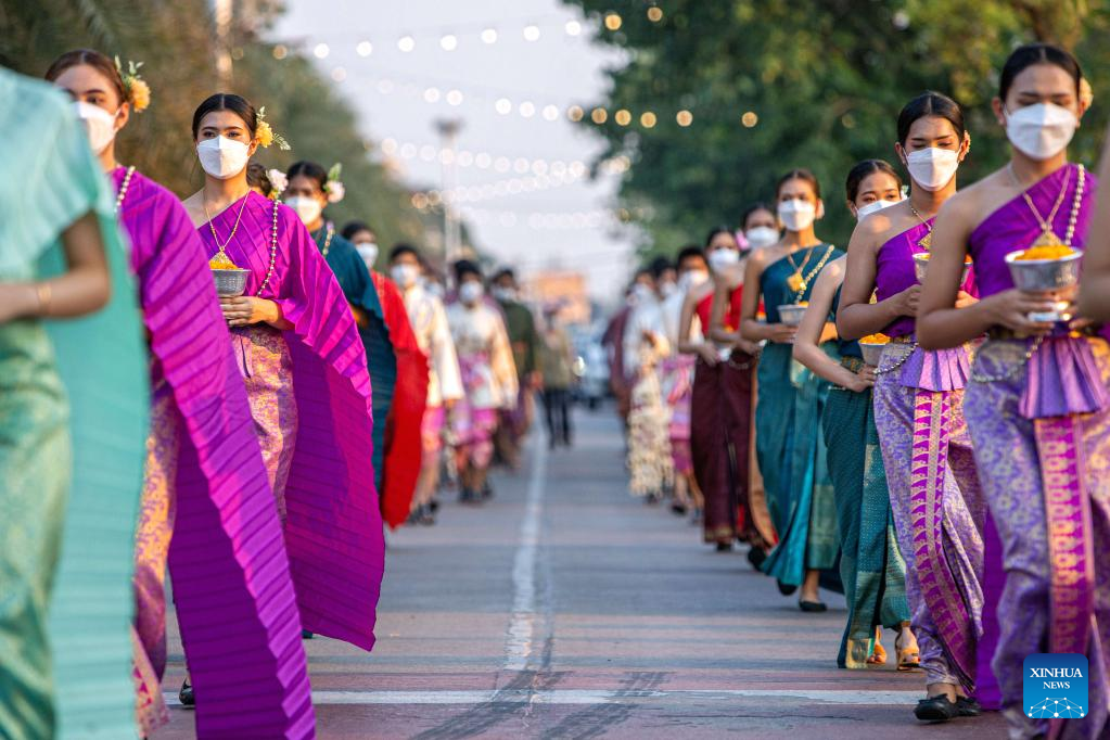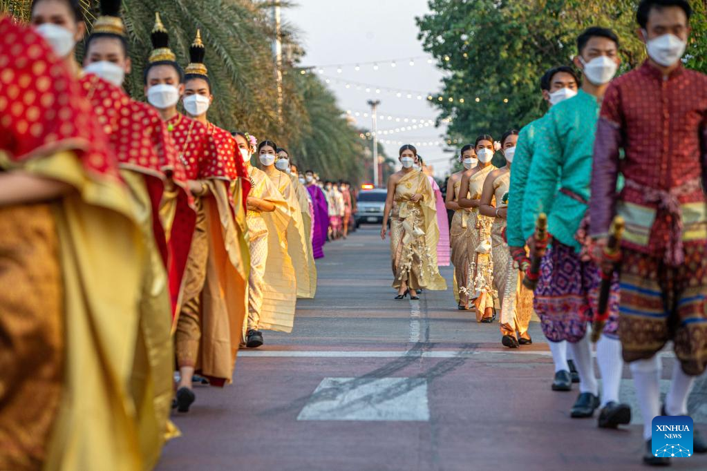 From April 13 to 15 every year is the traditional Thai New Year Songkran Festival. People will express their greetings by splashing water on each other. Affected by the COVID-19, Thailand has cancelled the street splashing celebration for the third consecutive year. (Xinhua/Wang Teng)