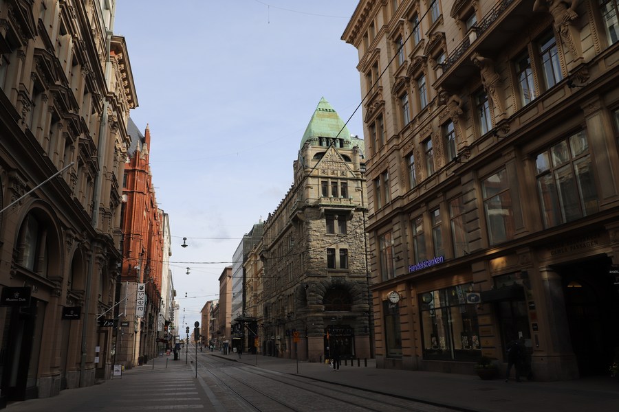 Photo taken on March 31, 2020 shows a street in Helsinki, Finland. (Zhu Haochen/Xinhua)