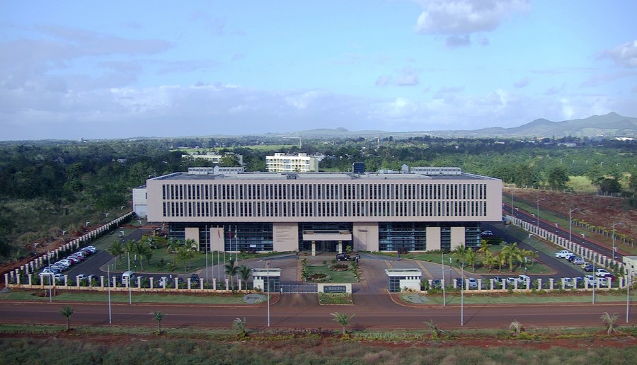 Aerial photo taken on July 26, 2018 shows the Noah Wealth Center, located at the Jinfei Economic, Trade & Cooperation Zone (Jinfei Zone), 3.5 kilometers west of Port Louis, capital of Mauritius. The China-built Jinfei Zone that occupies 211 hectares of land is located 3.5 kilometers west of the Mauritian capital of Port Louis near some of the country's most iconic landscapes. (Xinhua/Wang Teng)