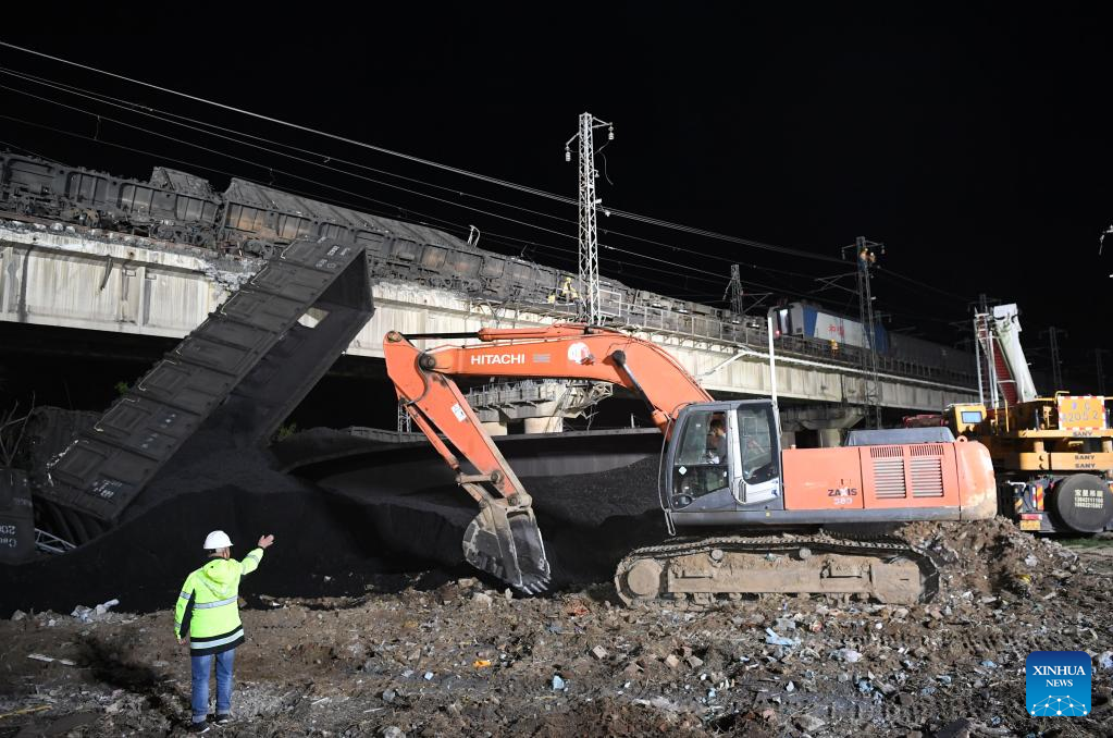 Railway authorities have dispatched six rescue trains and nearly 1,000 rescue workers to the site. No casualties have been reported so far. (Xinhua/Sun Fanyue)