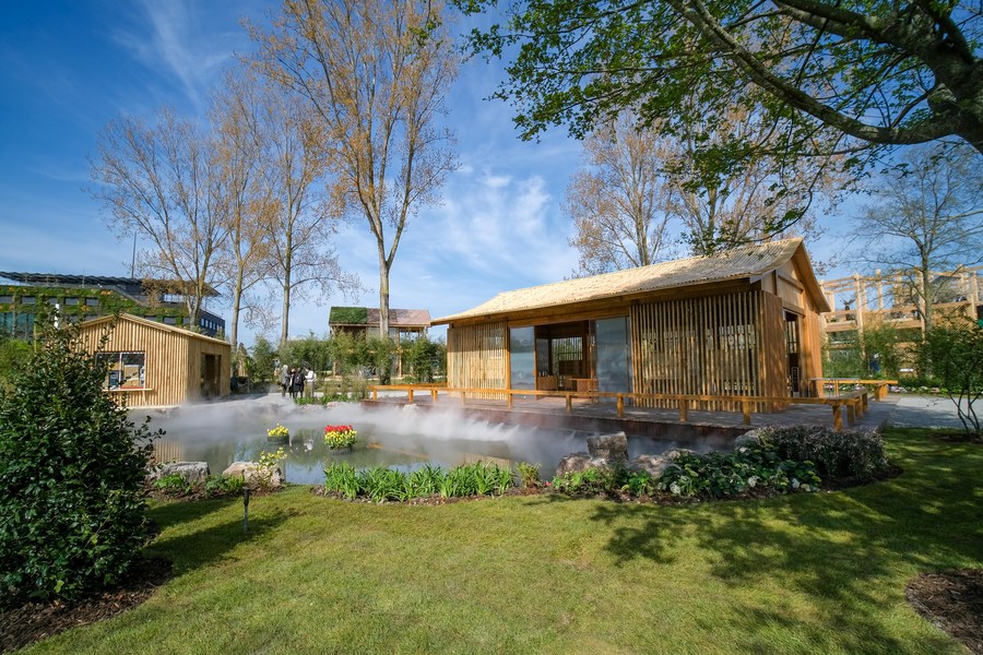 Photo taken on April 14, 2022 shows China's pavilion at Floriade Expo 2022 in Almere, the Netherlands. (Xinhua/Zhang Cheng)
