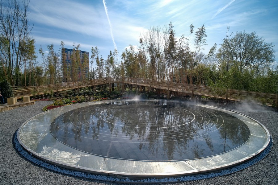ALMERE, the Netherlands, April 15 (Xinhua) -- The China Bamboo Garden, a poetic landscape featuring flowers and bamboos, has become a highlight among national pavilions at a decennial world horticultural exhibition, which opened here Thursday in Almere, the Netherlands.