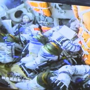 Three Chinese astronauts, the second team sent to orbit for space station construction, completed their six-month mission and returned to Earth safely on Saturday.