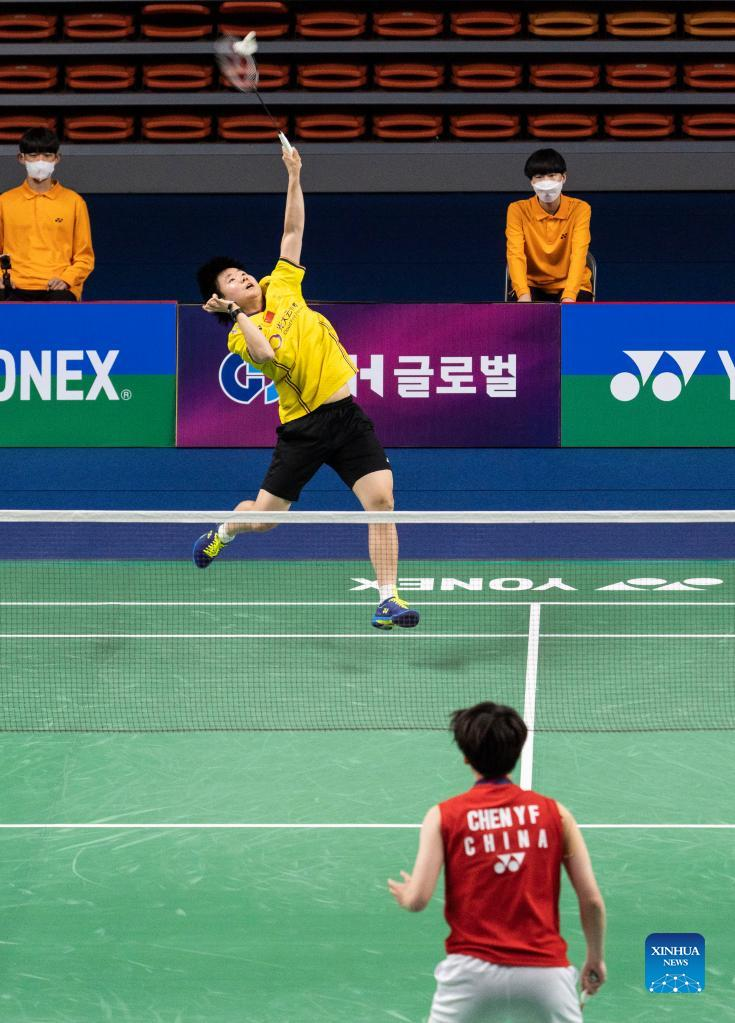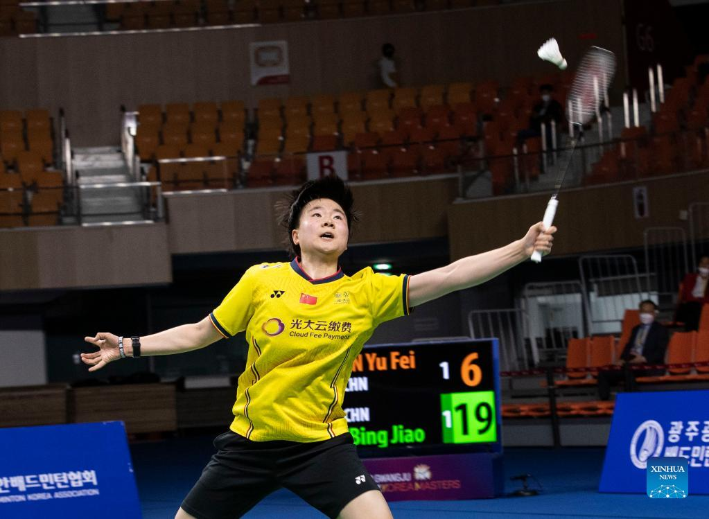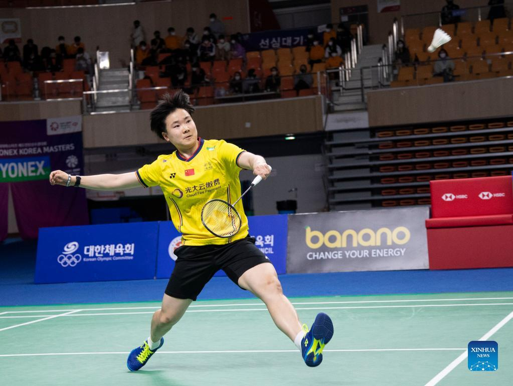 SEOUL, April 17 (Xinhua) -- China's He Bingjiao claimed the women's singles title, while Wang Yilyu/Huang Dongping took the mixed doubles crown at the 2022 South Korea Badminton Masters held in Gwangju, South Korea on Sunday.