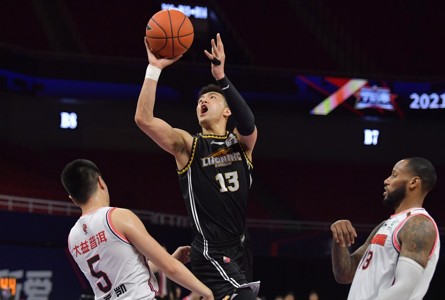 NANCHANG, China, April 16 (Xinhua) -- With Zhang Zhenlin's team-high 33 points, the Liaoning Flying Leopards edged the Guangdong Southern Tigers 117-116 in overtime, marching to the finals 3-0 in the best-of-five semifinal series of the Chinese Basketball Association (CBA) league on Saturday.