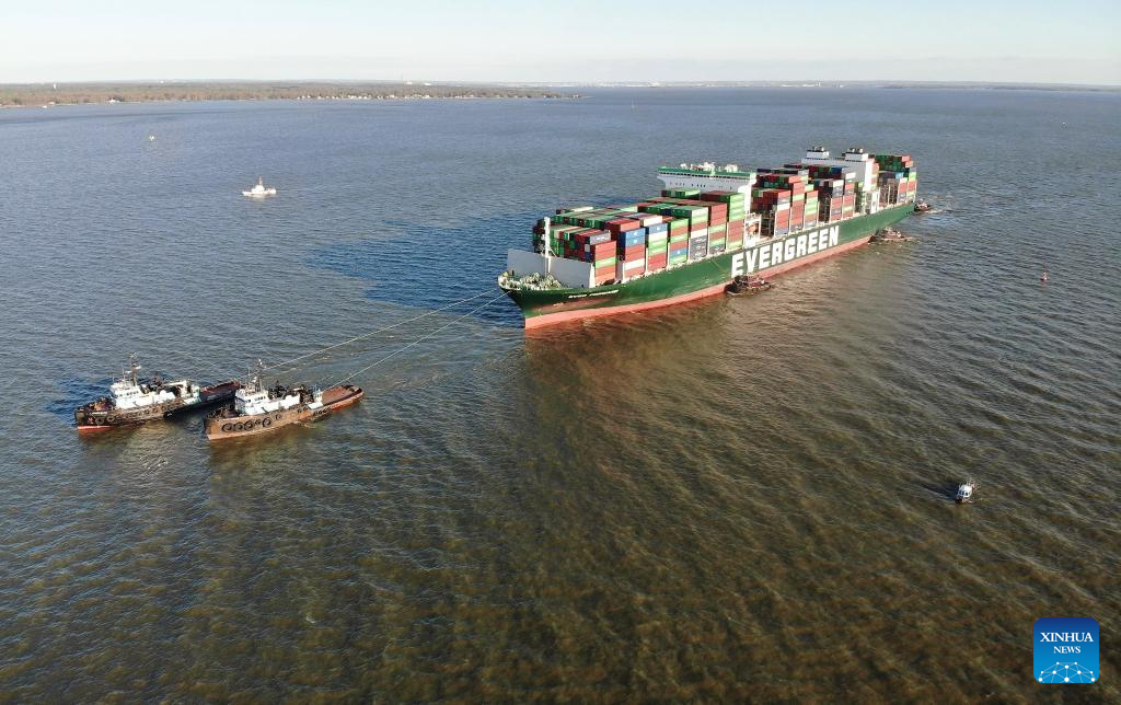 WASHINGTON, April 17 (Xinhua) -- A giant container ship named the Ever Forward with more than 4,000 containers aboard was refloated on Sunday more than a month after it ran aground on the East Coast, according to the U.S. Coast Guard.