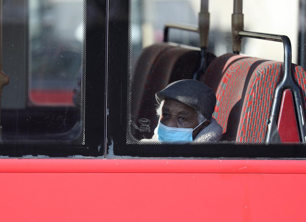 A man wearing a mask takes a bus in London, Britain, March 27, 2022. (Xinhua/Li Ying)