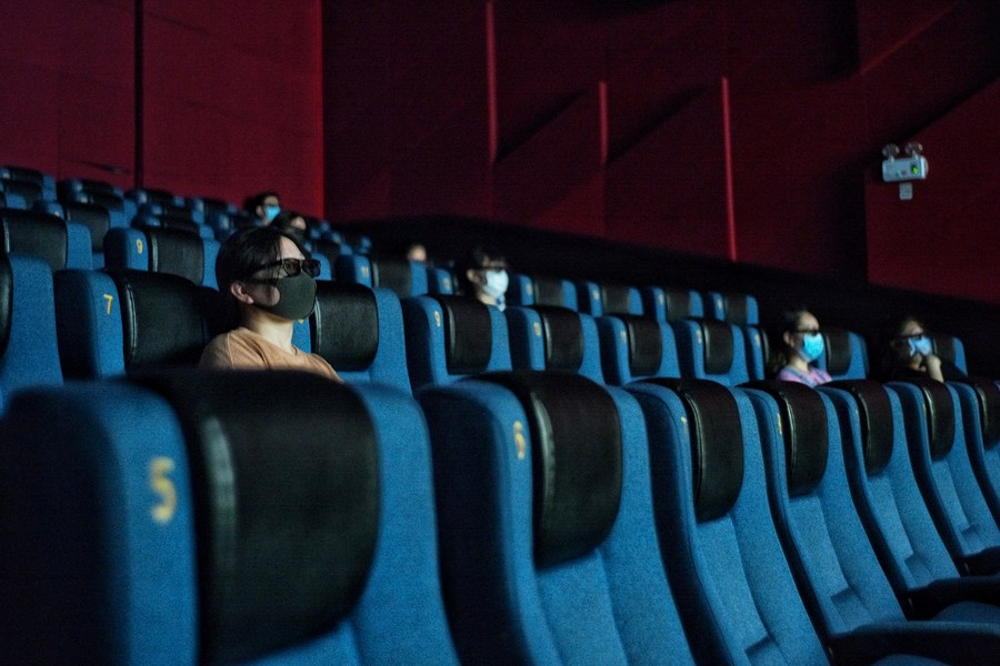 People watch a movie at the reopened Capital Cinema (Xidan branch) in Beijing, capital of China, July 24, 2020. (Xinhua/Peng Ziyang)
