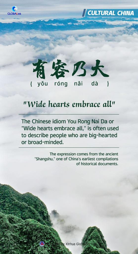 BEIJING, April 19 (Xinhua) -- The Chinese idiom "wide hearts embrace all," or "You Rong Nai Da," is often used to describe people who are big-hearted or broad-minded.