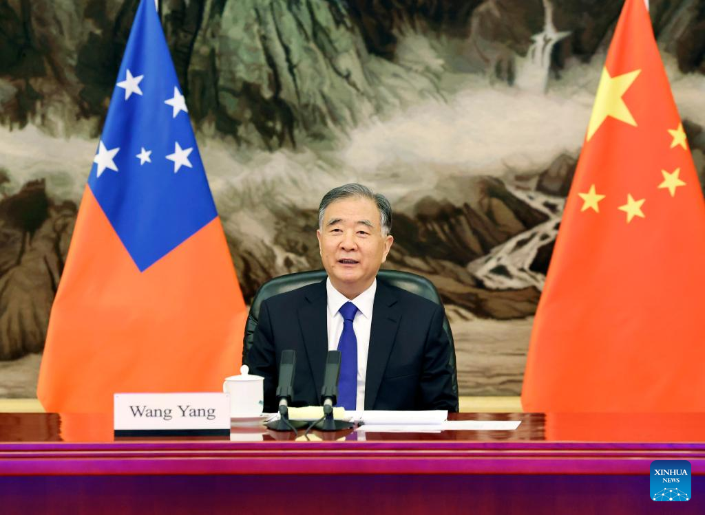 Wang, chairman of the Chinese People's Political Consultative Conference (CPPCC) National Committee, said that since the establishment of diplomatic ties between China and Samoa 47 years ago, bilateral relations have made great progress and brought tangible benefits to the two peoples.