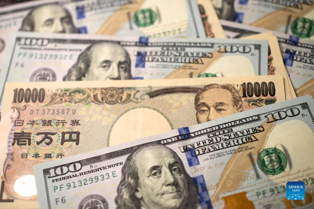 Photo taken on April 20, 2022 shows the Japanese yen and U.S. dollar banknotes in Tokyo, Japan. The Japanese yen has weakened markedly this year as major central banks in Europe and the United States have shifted monetary policies. (Xinhua/Zhang Xiaoyu)
