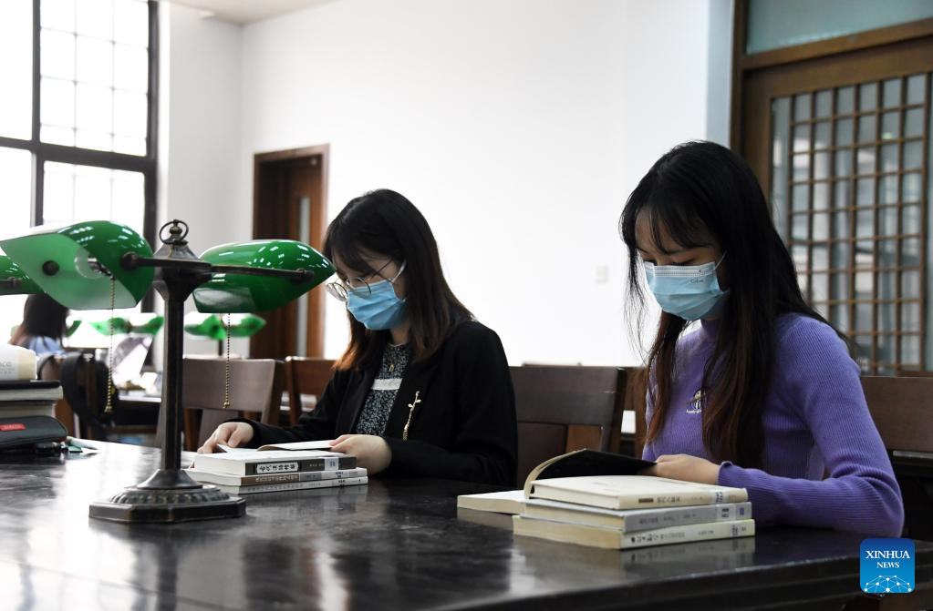 People read at Peking University Library in Beijing, capital of China, April 19, 2022.