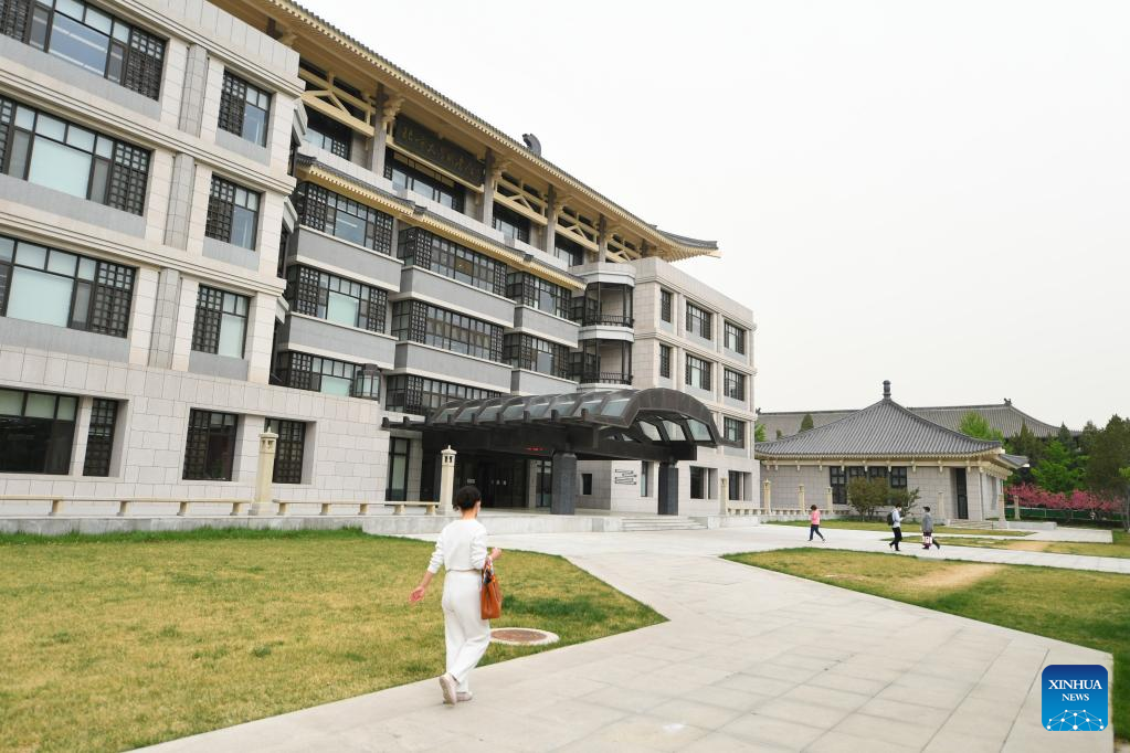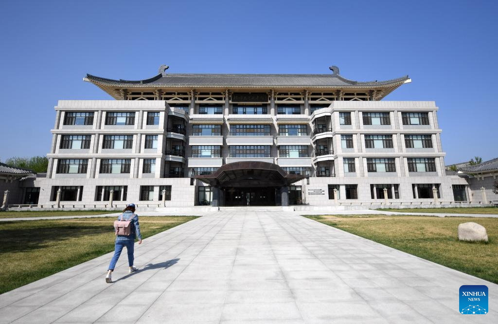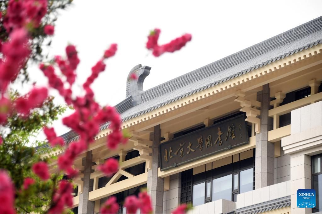 Photo taken on April 19, 2022 shows the exterior view of Peking University Library in Beijing, capital of China.