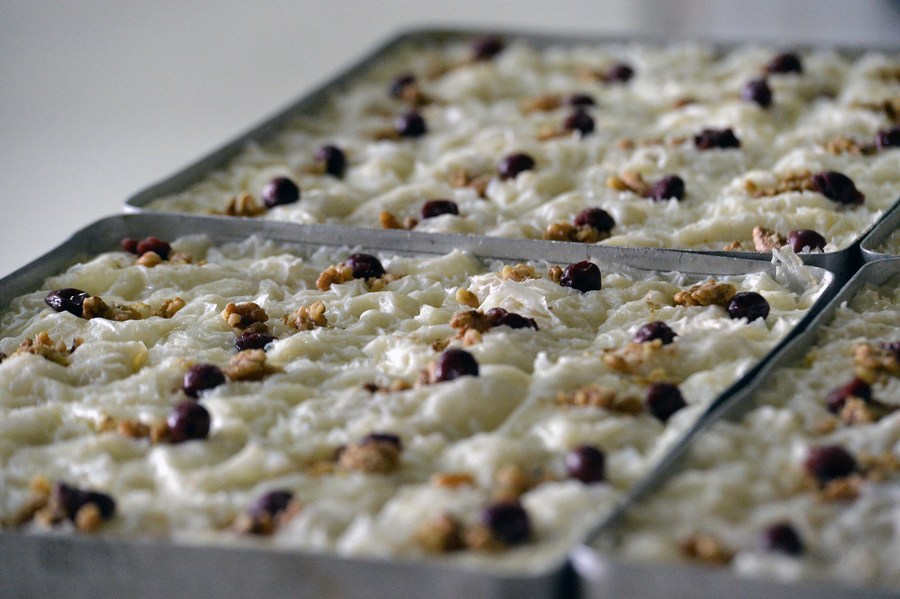Photo taken on April 19, 2022 shows the Turkish dessert Gullac at a bakery in Ankara, Turkey. (Photo by Mustafa Kaya/Xinhua)■