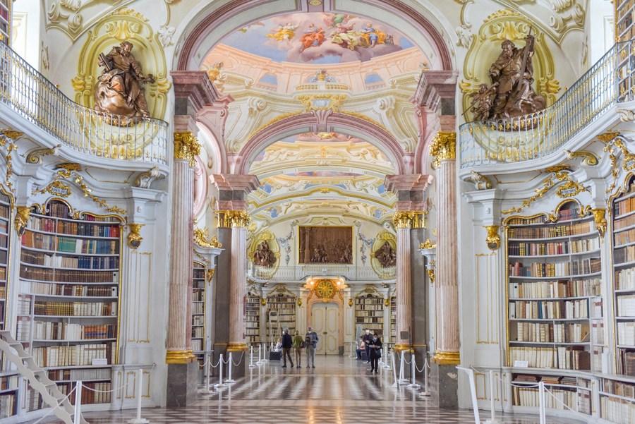 Photo taken on April 13, 2022 shows a view of the library of Admont Abbey in Admont, Austria. (Xinhua/Guo Chen)■