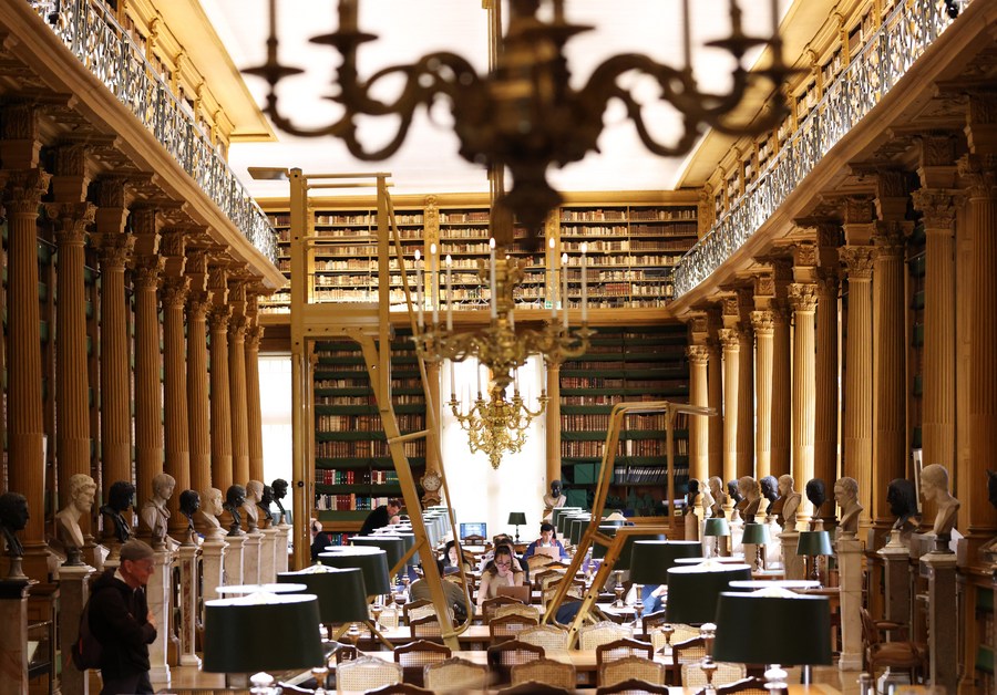 Photo taken on April 20, 2022 shows an internal view of the Bibliotheque Mazarine, or Mazarine Library, in Paris, France. (Xinhua/Gao Jing)