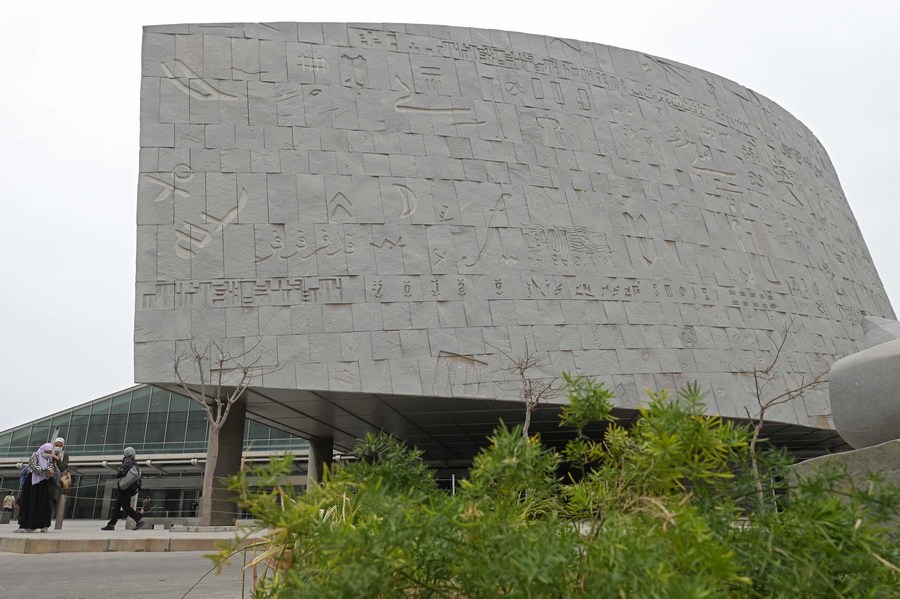 Photo shows a view of the exterior of the Bibliotheca Alexandrina in Alexandria, Egypt on April 18, 2022. (Photo by Ahmed Draz/Xinhua)