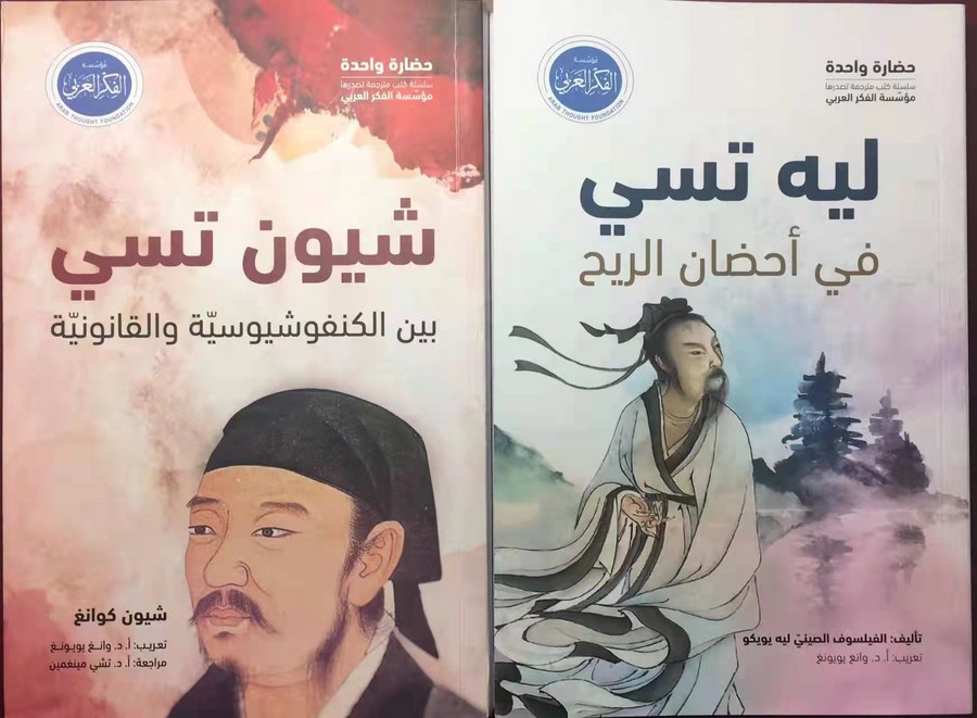 The photo shows the books of Xunzi(L) and Liezi(R) in Arabic version. (Photo courtesy of the books' translator Wang Youyong)