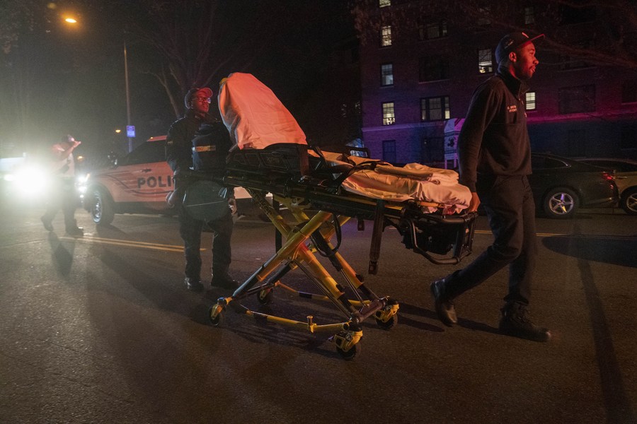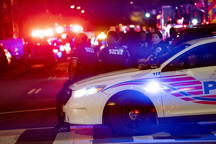 First responders work at the scene of a shooting in Washington, D.C., the United States, April 22, 2022. (Xinhua/Liu Jie)