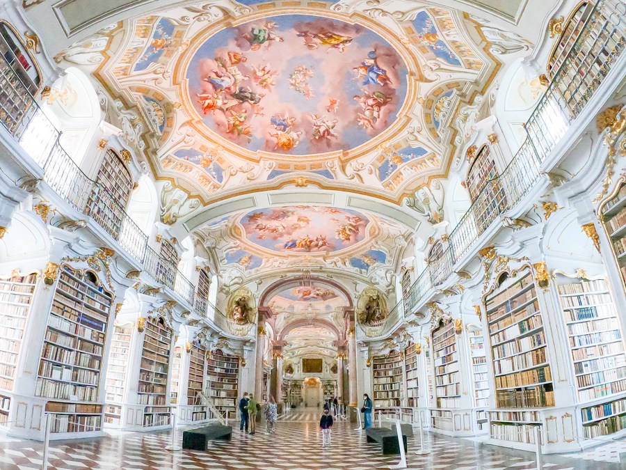 Photo taken on April 13, 2022 shows a view of the library of Admont Abbey in Admont, Austria. (Xinhua/Guo Chen)■