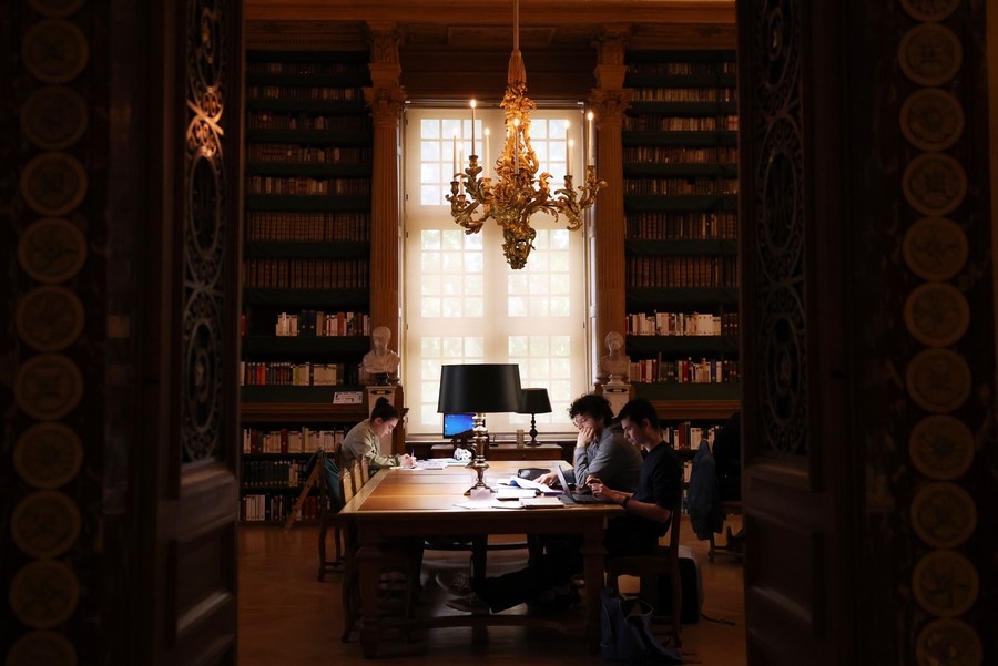 Photo taken on April 20, 2022 shows an internal view of the Bibliotheque Mazarine, or Mazarine Library, in Paris, France. (Xinhua/Gao Jing)