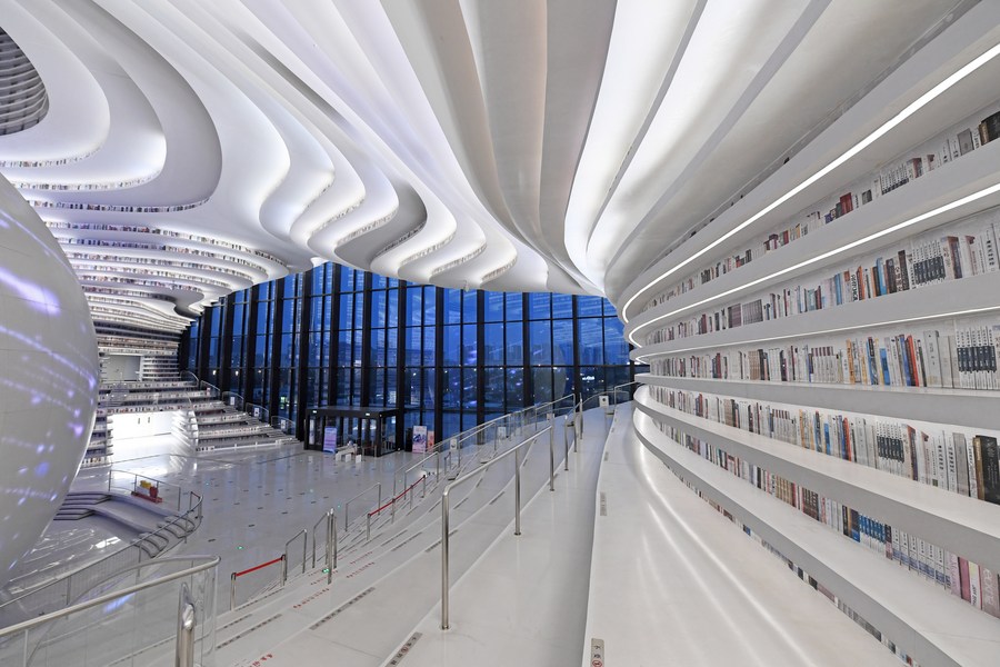 The library, a cultural landmark of Tianjin, officially opened to the public in October of 2017. Its stunning design has received a lot of attention from the public. (Xinhua/Zhao Zishuo)