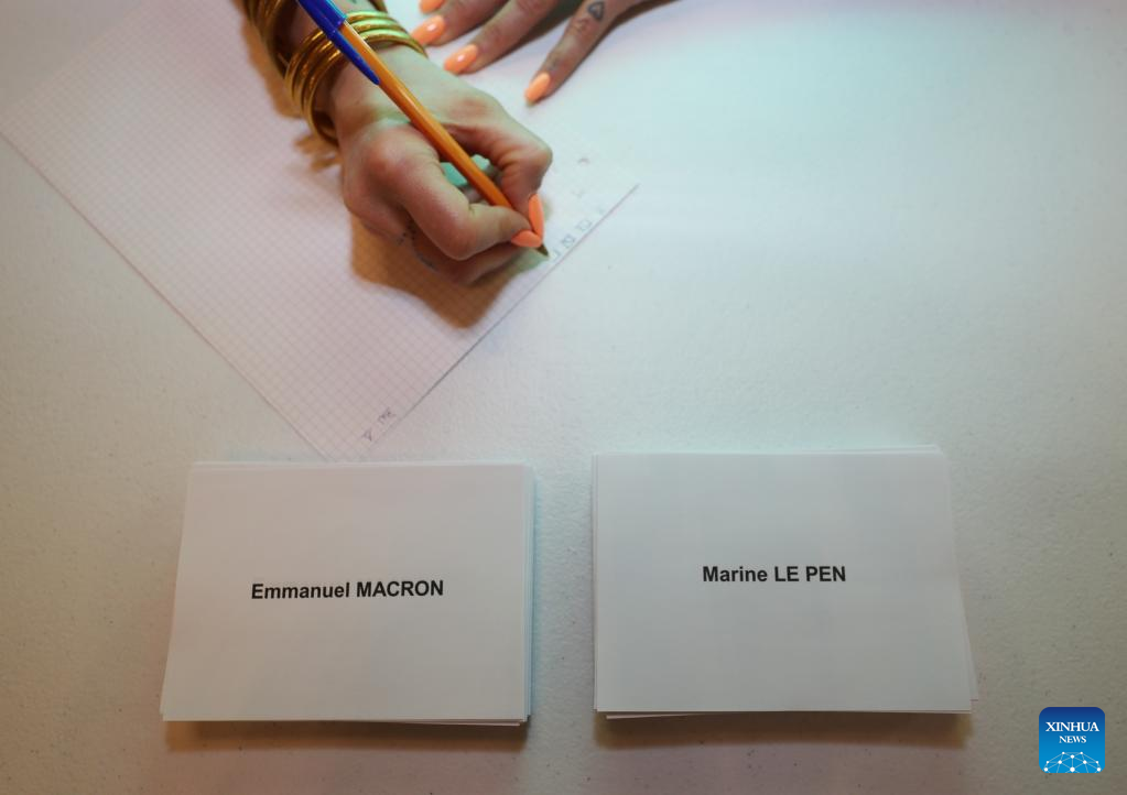 PARIS, April 24 (Xinhua) -- The 2022 French presidential runoff kicked off at 8 a.m. local time (0600 GMT) on Sunday in Metropolitan France between incumbent President Emmanuel Macron and candidate Marine Le Pen.