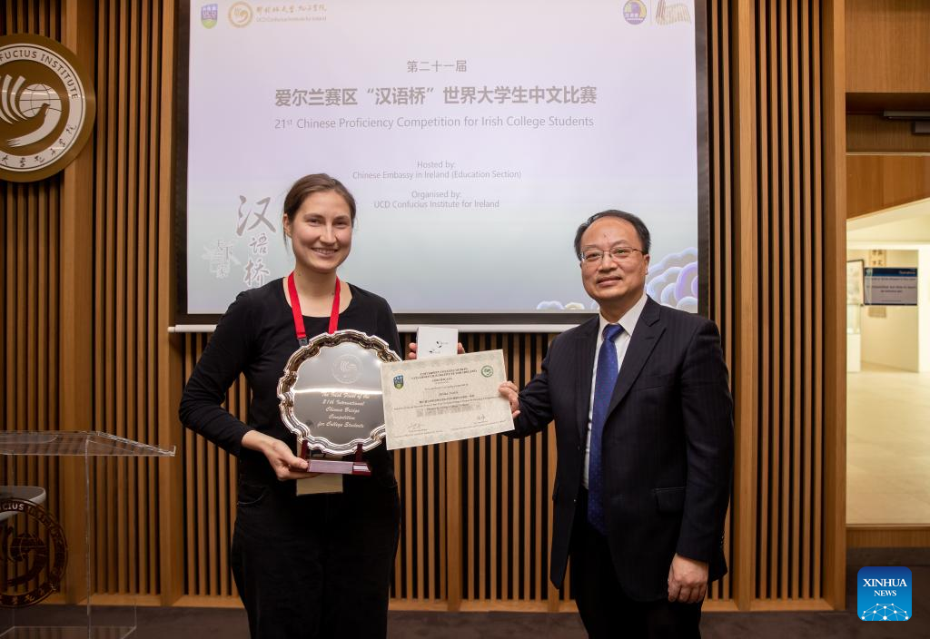 DUBLIN, April 24 (Xinhua) -- The 21st "Chinese Bridge" Chinese Proficiency Competition for Irish College Students was held here at the Confucius Institute of University College Dublin (UCD) in the Irish capital on Sunday.