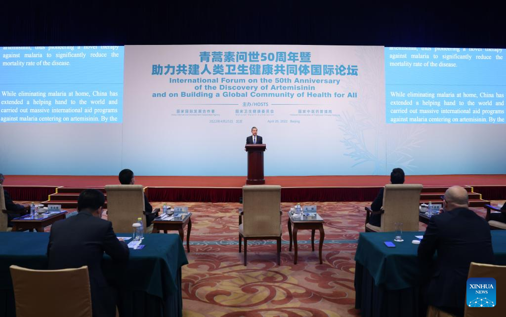 BEIJING, April 25 (Xinhua) -- China had provided billions of doses of artemisinin medicines and trained tens of thousands of professionals for developing countries by the end of 2021 in its international anti-malarial assistance, according to Chinese State Councilor and Foreign Minister Wang Yi.