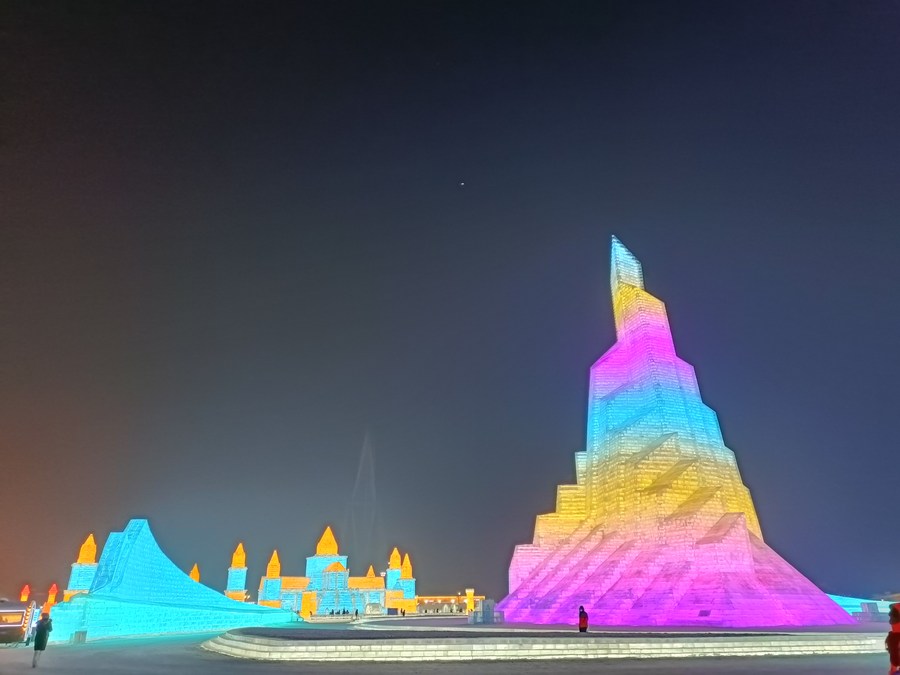 Tourists visit the Harbin Ice-Snow World in Harbin, northeast China's Heilongjiang Province, Jan. 12, 2022. (Xinhua/Zhu Yue)