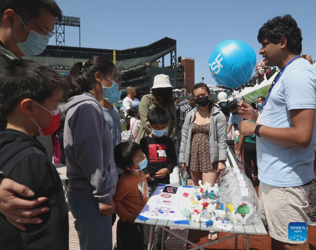 People take part in the Bay Area Science Festival Discover Day at Oracle Park in San Francisco, the United States, April 24, 2022. (Photo by Liu Yilin/Xinhua)