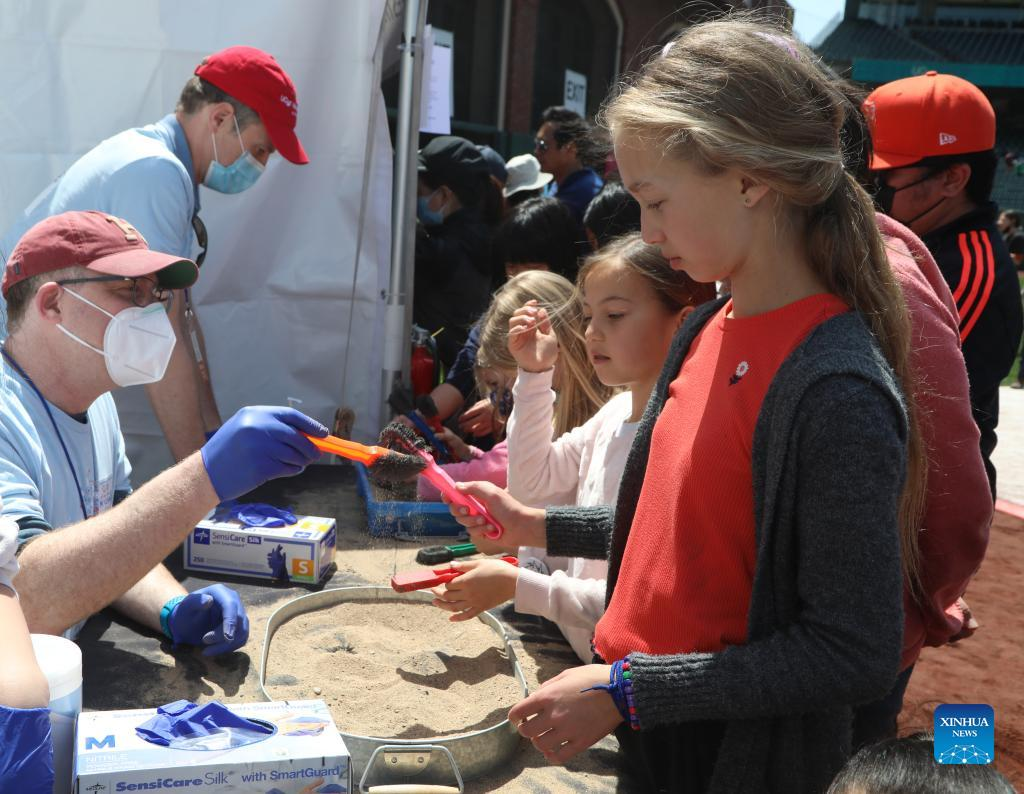 Children take part in the Bay Area Science Festival Discover Day at Oracle Park in San Francisco, the United States, April 24, 2022. (Photo by Liu Yilin/Xinhua)
