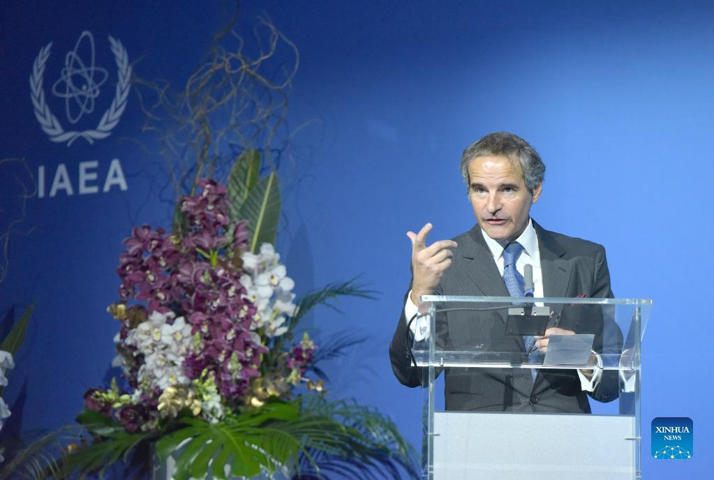 International Atomic Energy Agency (IAEA) Director-General Rafael Grossi speaks at the first "International Conference on Nuclear Law: The Global Debate" in Vienna, Austria, April 25, 2022. IAEA kicked off its first international conference on nuclear law here on Monday. (Xinhua/Guo Chen)