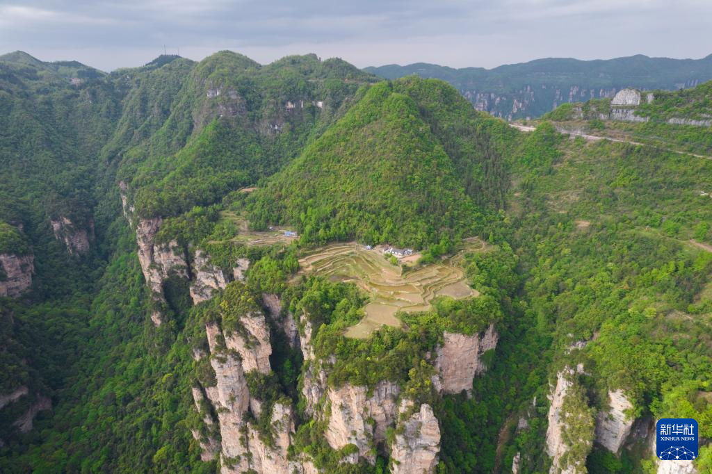 Aerial photo taken on April 19, 2022 shows a view of the Wulingyuan scenic area in Zhangjiajie, central China's Hunan Province. Wulingyuan, a UNESCO World Heritage Site, is noted for its unique quartzite sandstone pillars and peaks across most of the site. (Xinhua/Chen Zeguo)