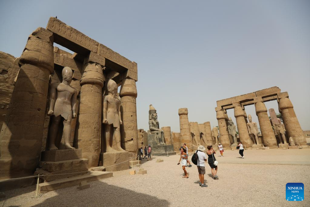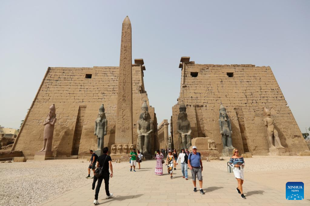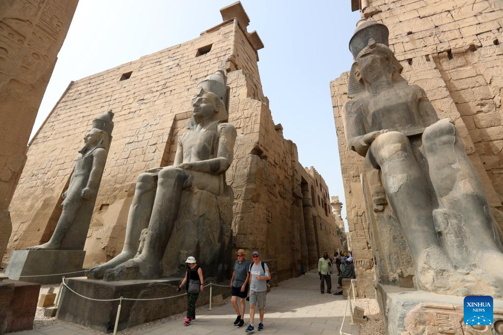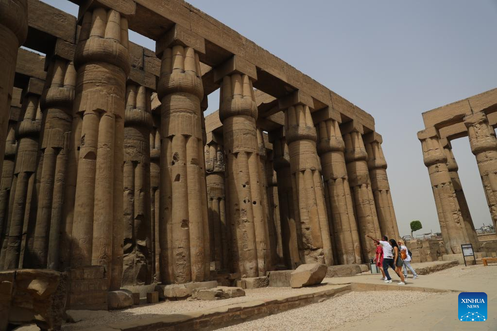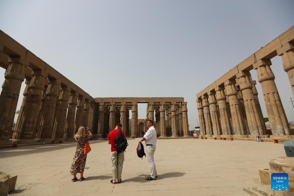Tourists visit the Luxor Temple in Luxor, Egypt, on April 26, 2022. Luxor, a capital of ancient Upper Egypt known as Thebes, is nowadays a famous tourist destination for the historic temple buildings and other relics. (Xinhua/Sui Xiankai)