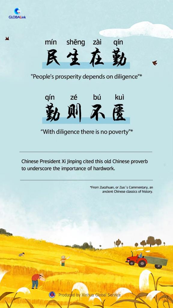 BEIJING, April 28 (Xinhua) -- "People's prosperity depends on diligence; with diligence there is no poverty," President Xi Jinping has cited this old Chinese proverb to underscore the importance of hardwork.