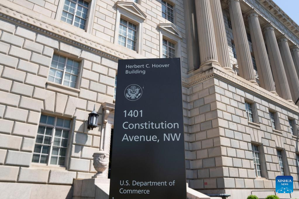 Photo taken on April 28, 2022 shows the Commerce Department building in Washington, D.C., the United States. The U.S. economy shrank at an annual rate of 1.4 percent in the first quarter as effects of the Omicron surge start to show up, the U.S. Commerce Department reported Thursday. (Xinhua/Liu Jie)