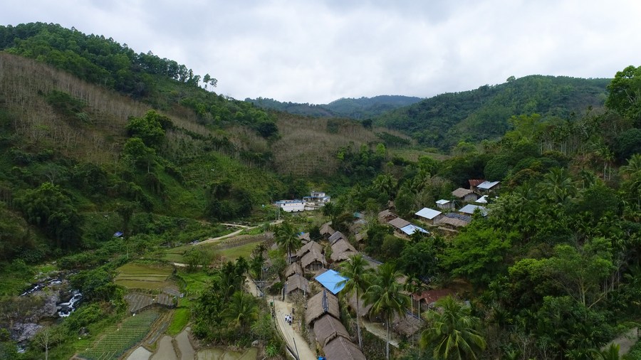 Aerial photo taken on Feb. 16, 2022 shows the view of Chubao Village in Wuzhishan City, south China's Hainan Province. (Xinhua/Li Duojiang)