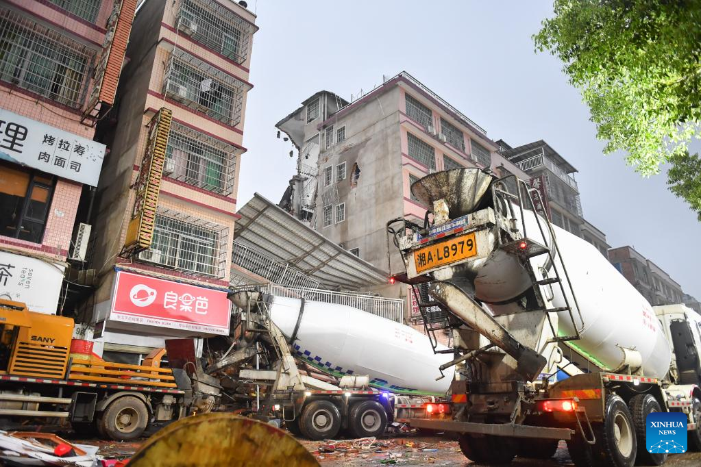 Five people have been rescued, and 23 others remain trapped after a self-constructed residential building collapsed Friday in central China's Hunan Province, said the press conference on Saturday, citing a preliminary report.
