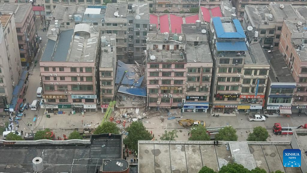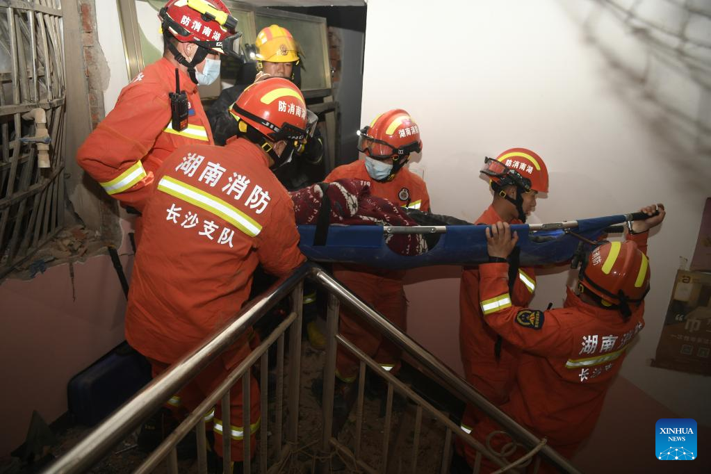 CHANGSHA, April 30 (Xinhua) -- Five people have been rescued, and 23 others remain trapped after a self-constructed residential building collapsed Friday in central China's Hunan Province, said a press conference on Saturday, citing a preliminary report.