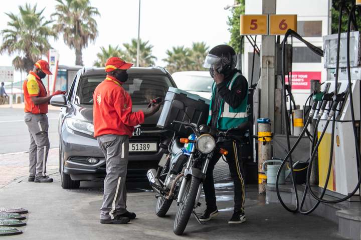 A courier pays for fuel at a petrol station in Cape Town, legislative capital of South Africa, on March 2, 2022. (Xinhua/Lyu Tianran)