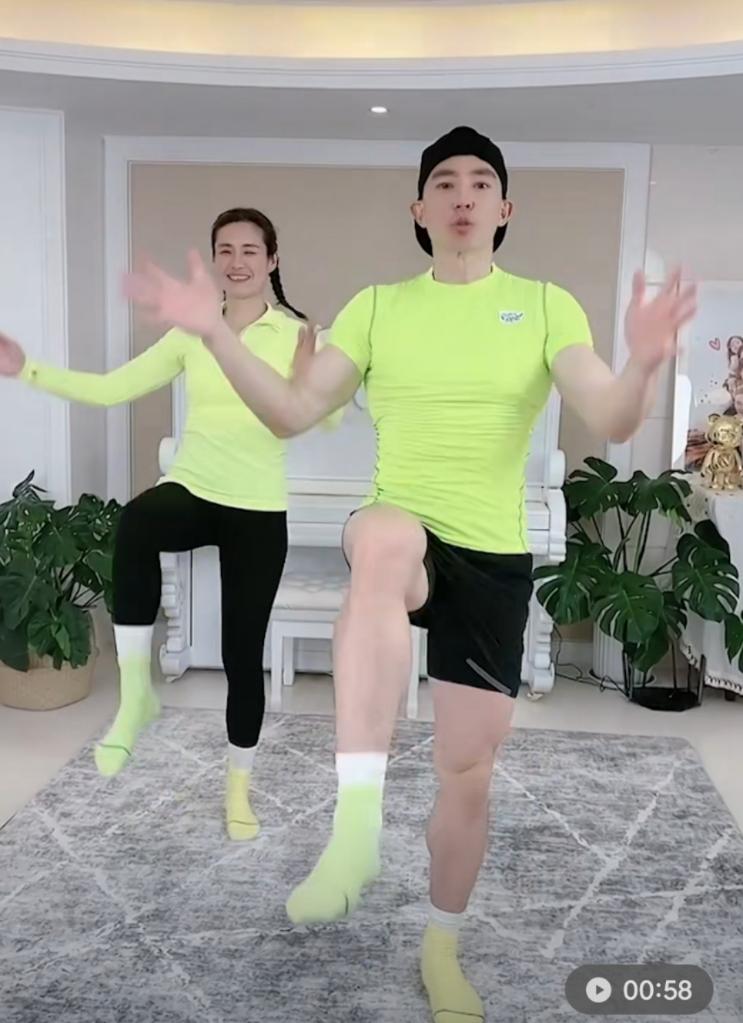 Chinese singer Liu Genghong and his wife livestream their workout session on Douyin.