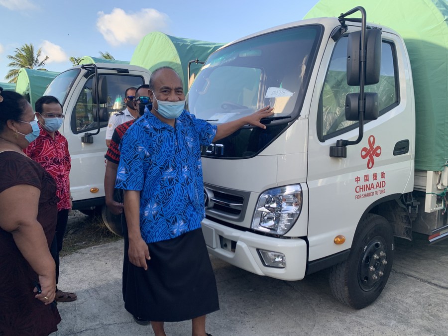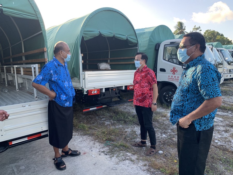 Teabo, on behalf of the Kiribati government, thanked the Chinese side for providing the school trucks and aid in other areas. He said lack of school transport in Kiribati's outer islands has been a pressing issue, noting that in some places local students have to walk a long distance to school.