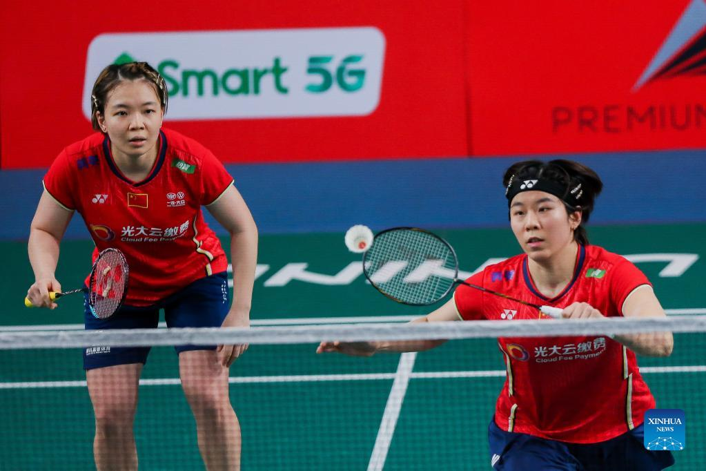 Chen Qingchen/Jia Yifan (R) of China compete during the women's doubles final against Iwanaga Rin/Nakanish Kie of Japan at the Badminton Asia Championships 2022 in Manila, the Philippines, May 1, 2022. (Xinhua/Rouelle Umali)
