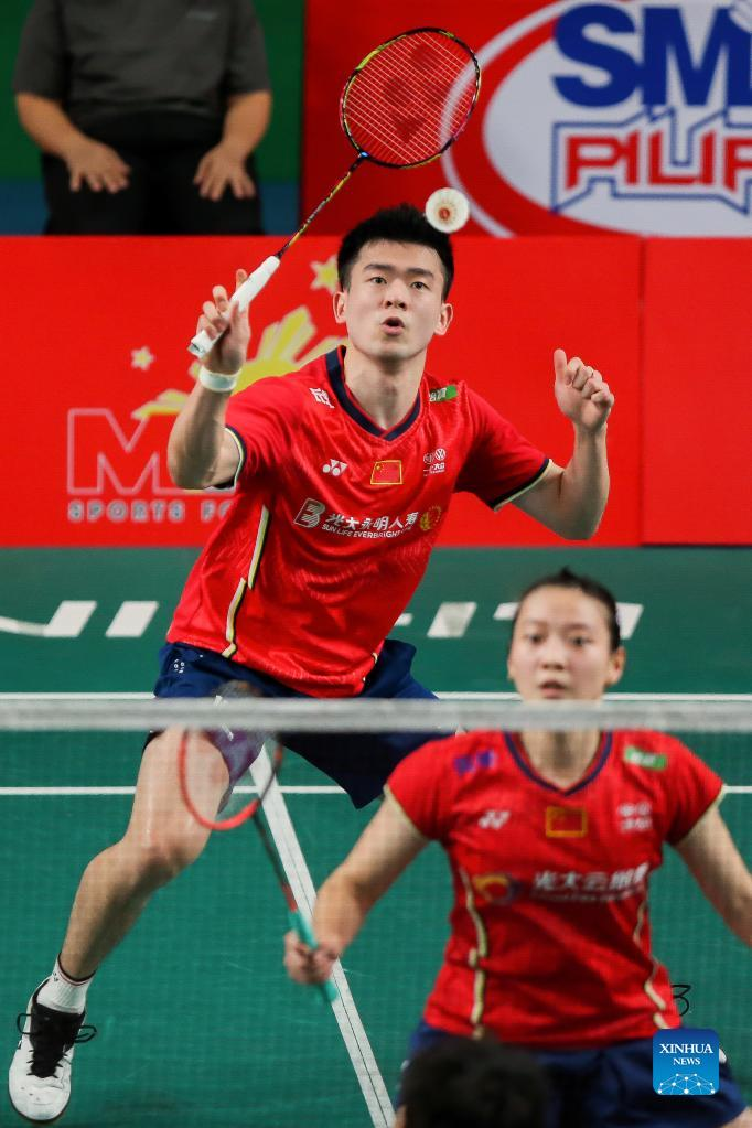 Zheng Siwei (L)/Huang Yaqiong of China compete during the mixed doubles final against their compatriots Wang Yilyu/Huang Dongping at the Badminton Asia Championships 2022 in Manila, the Philippines, May 1, 2022. (Xinhua/Rouelle Umali)