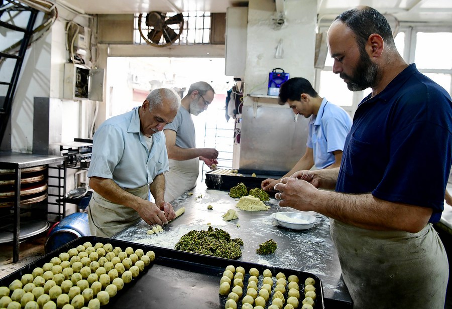 DAMASCUS, May 1 (Xinhua) -- In the past, when the Muslim holy month of Ramadan comes to an end, hundreds of Syrians would rush to the ancient souks in the capital Damascus to buy Eid sweets, following an old tradition to celebrate the end of the fasting month with a lot of local sweets.